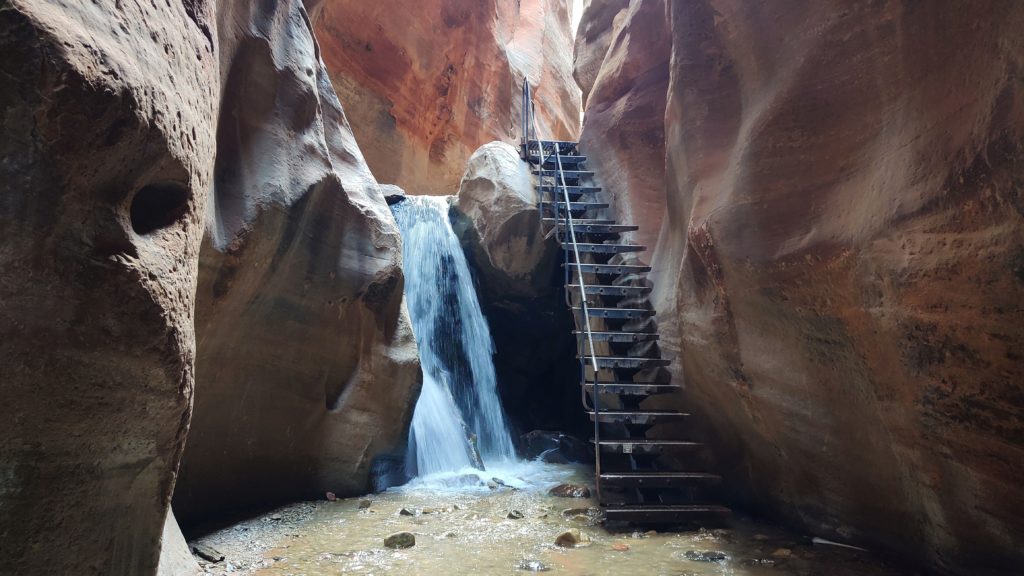 The Kanarra Falls challenge you to hike right through the waters in between the wet rocks to reach all the falls. A superb experience, sporty to challenging with phantastic views along the 2-3 h hike.