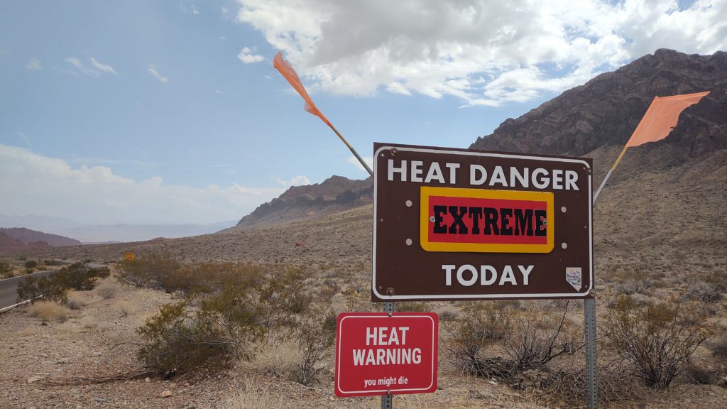 The Valley of Fire warns you of excessive heat and that “you might die”. But again, also worth the views out here. Just cover your head and drink a lot of water in 45 plus degrees Centigrade or around 120 Fahrenheit.