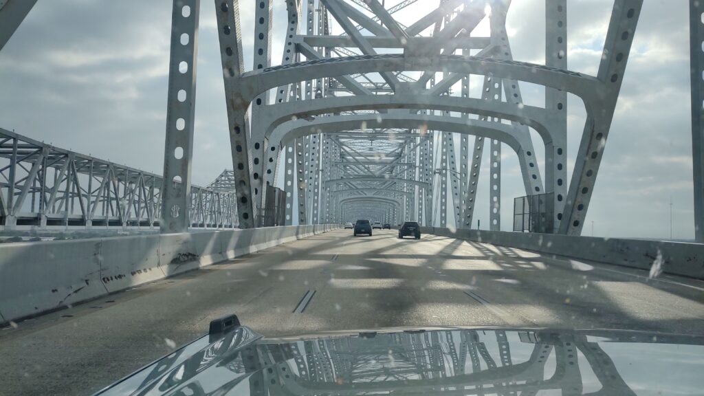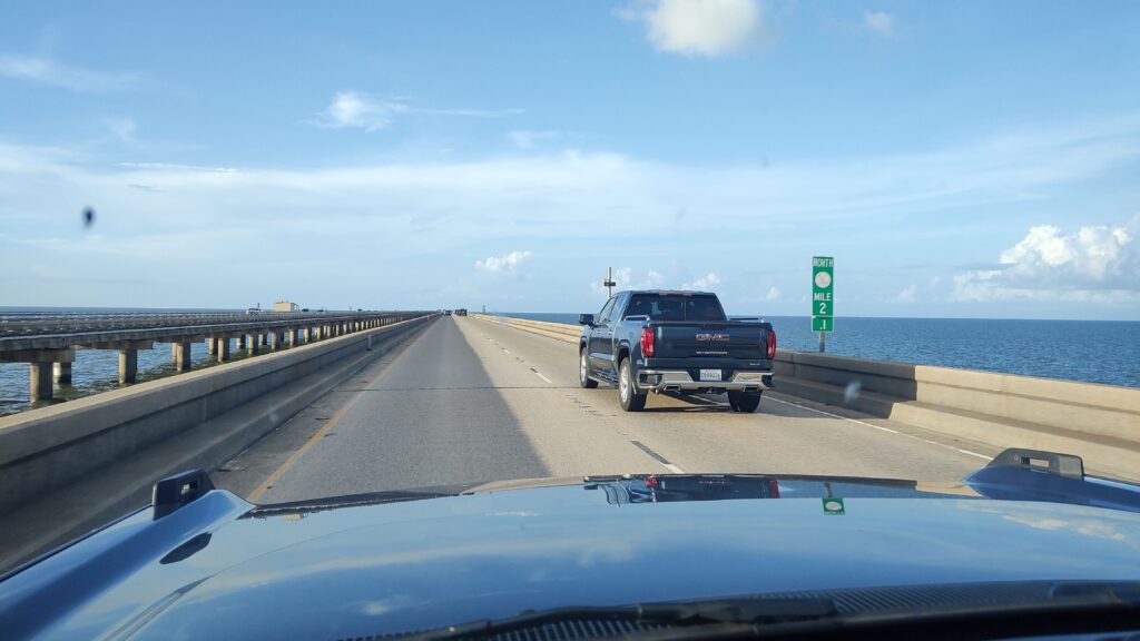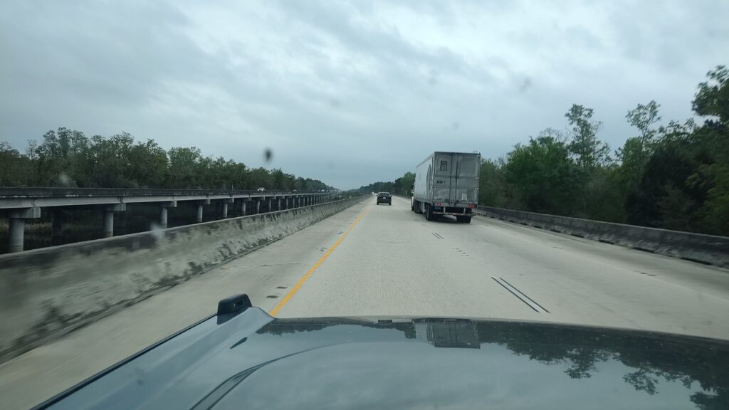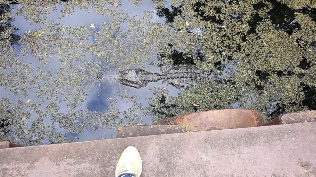 Many Plantations like famous Oak Valley are worth a day-trip from NOLA. Check it out. You will learn from the past and how beautiful and big a southern house can be. Or which surely dark history every plantation holds with the many slave lives lived to harvest crop or sugar cane. All just that little bit above the Mississippi shore line. Stark contrast of slavery and other dark history with the given sheer beauty of the main building of a plantation left me astonished. Back on the road, many parts of bigger roads are build on concrete stilts as the swamp is simply everywhere!