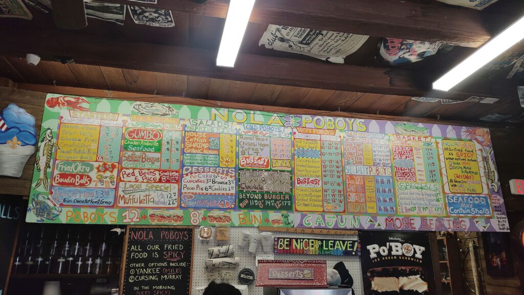 Memphis feels that blues, is deeper on music, Nola (New Orleans) seems crazier and actually provides more of a global city feel due to all the people coming in by boat/ cruise liner, plane or road-tripping just like I did this time. NOLA is for sure a city to visit multiple times and so I am thankful to have experienced it another time. Oh, be sure to have a hippie-styled – but surely southern full breakfast at LIZ Where Y’all At in Mandeville. Lunch or dinner can be a Po’Boay in New Orleans, signature sandwiches with fresh fish and salad.